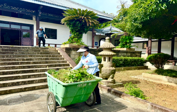 近日景区公司相关负责人毛新锋带领职工聚焦诗词碑林、凤仪亭、纪念园清水塘、石干娘等核心区域及沿线,清理杂草枯枝,以行动守护韶山旅游的生态颜值与文化底色。